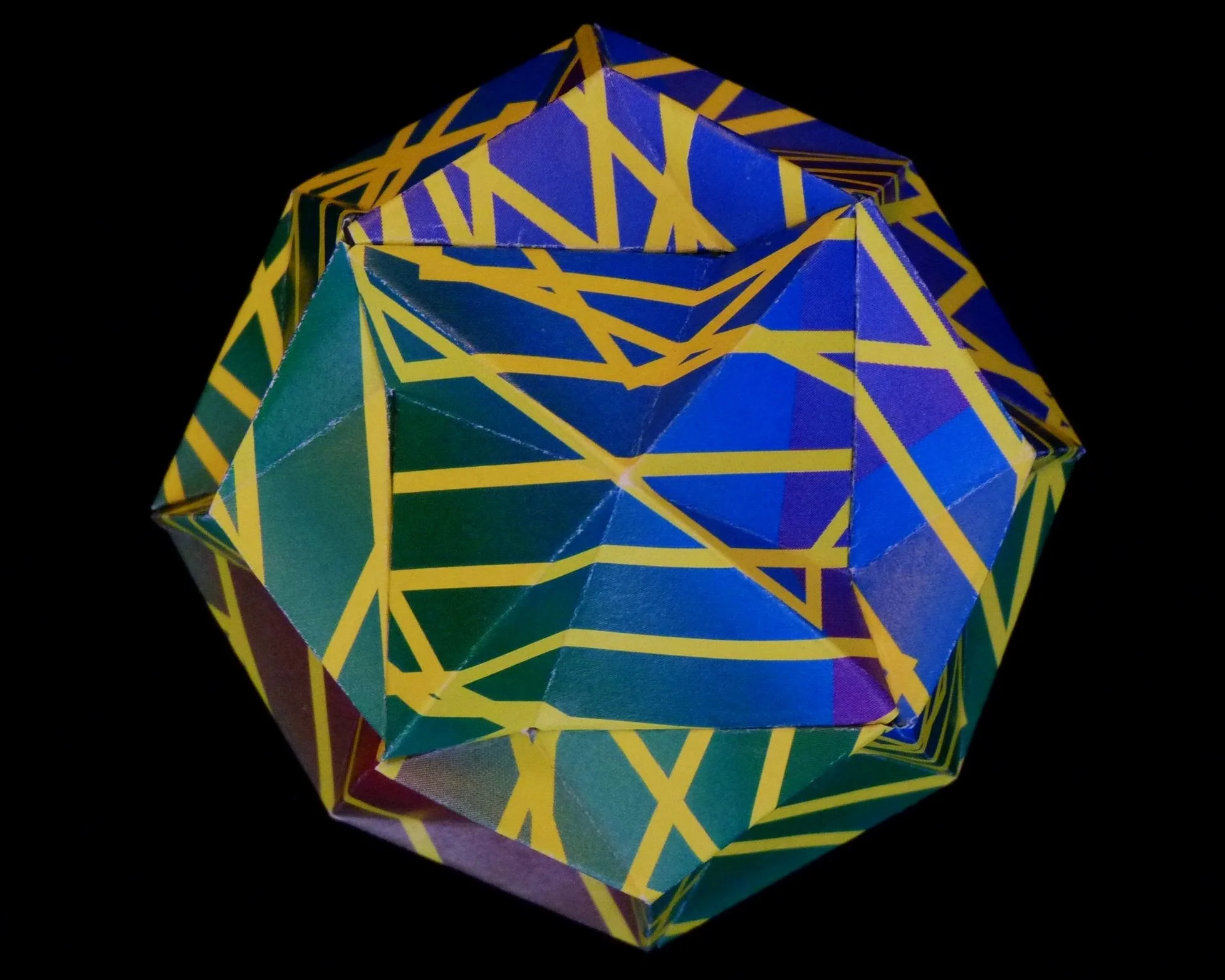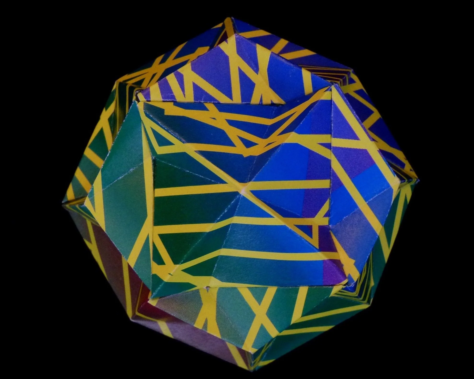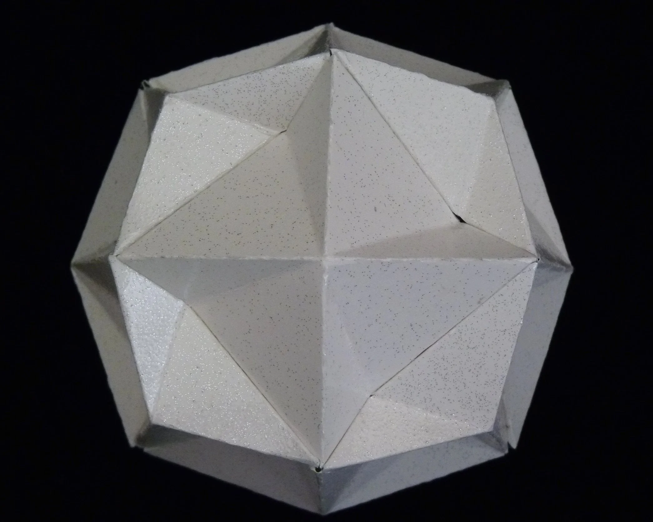 Connect a triangular part between each pair of square parts that were added in Step 5. Each new triangular part is attached using a long glue flap and a short glue flap glued to similar on each square part.