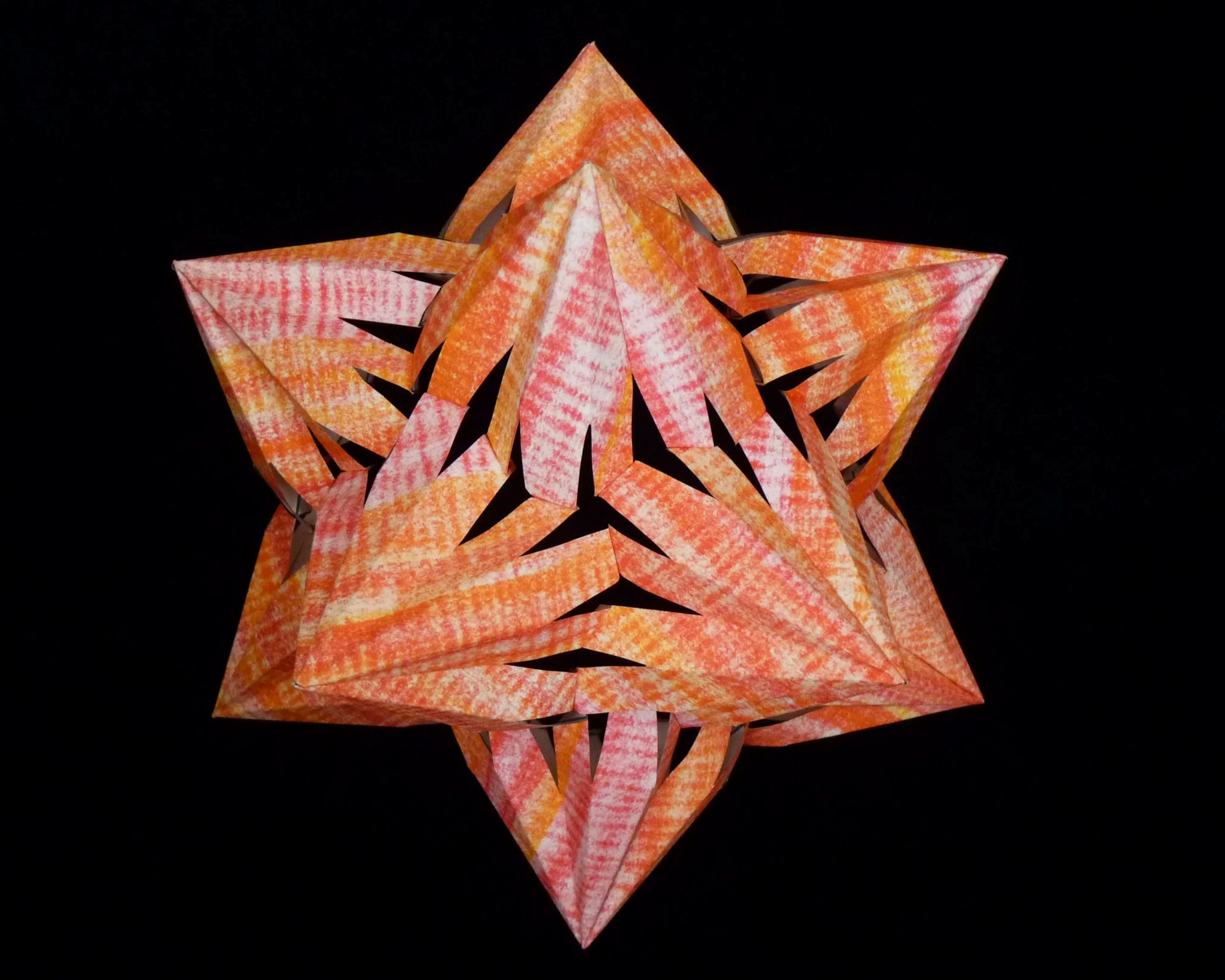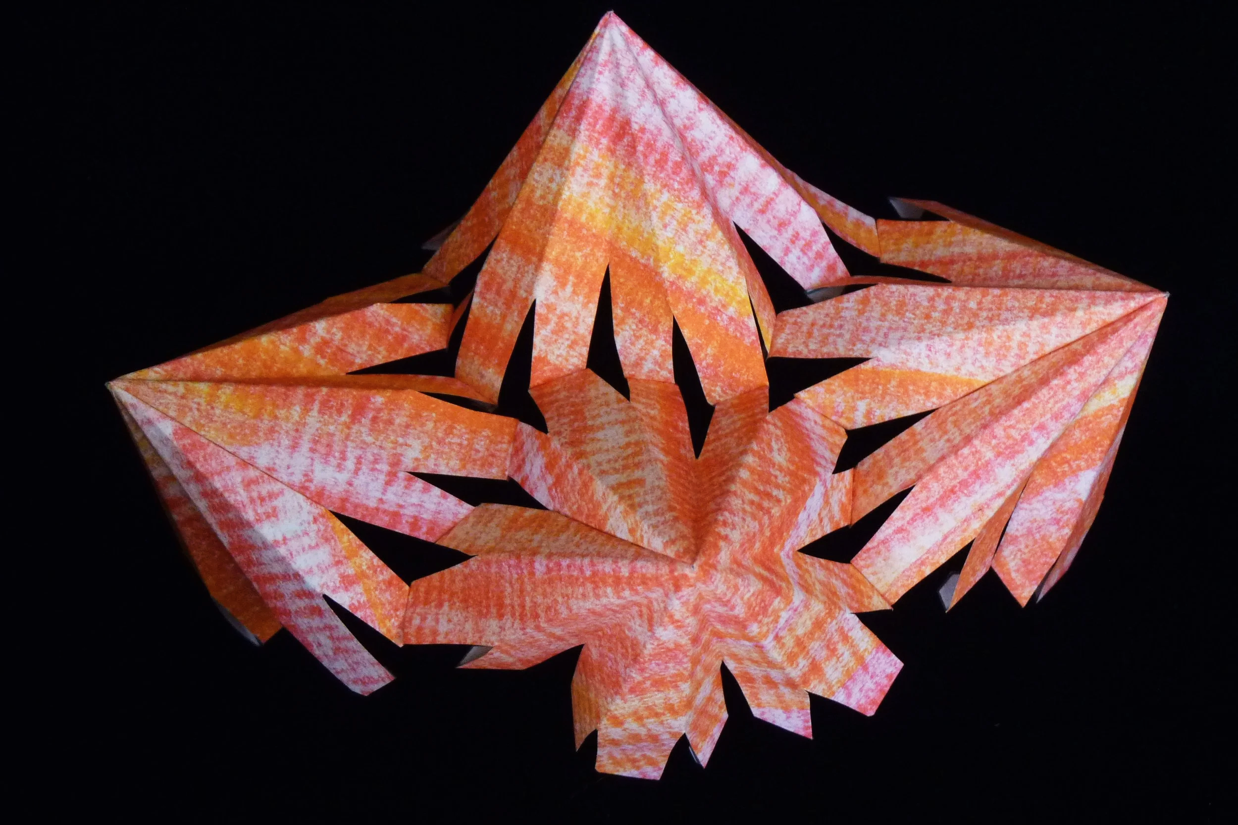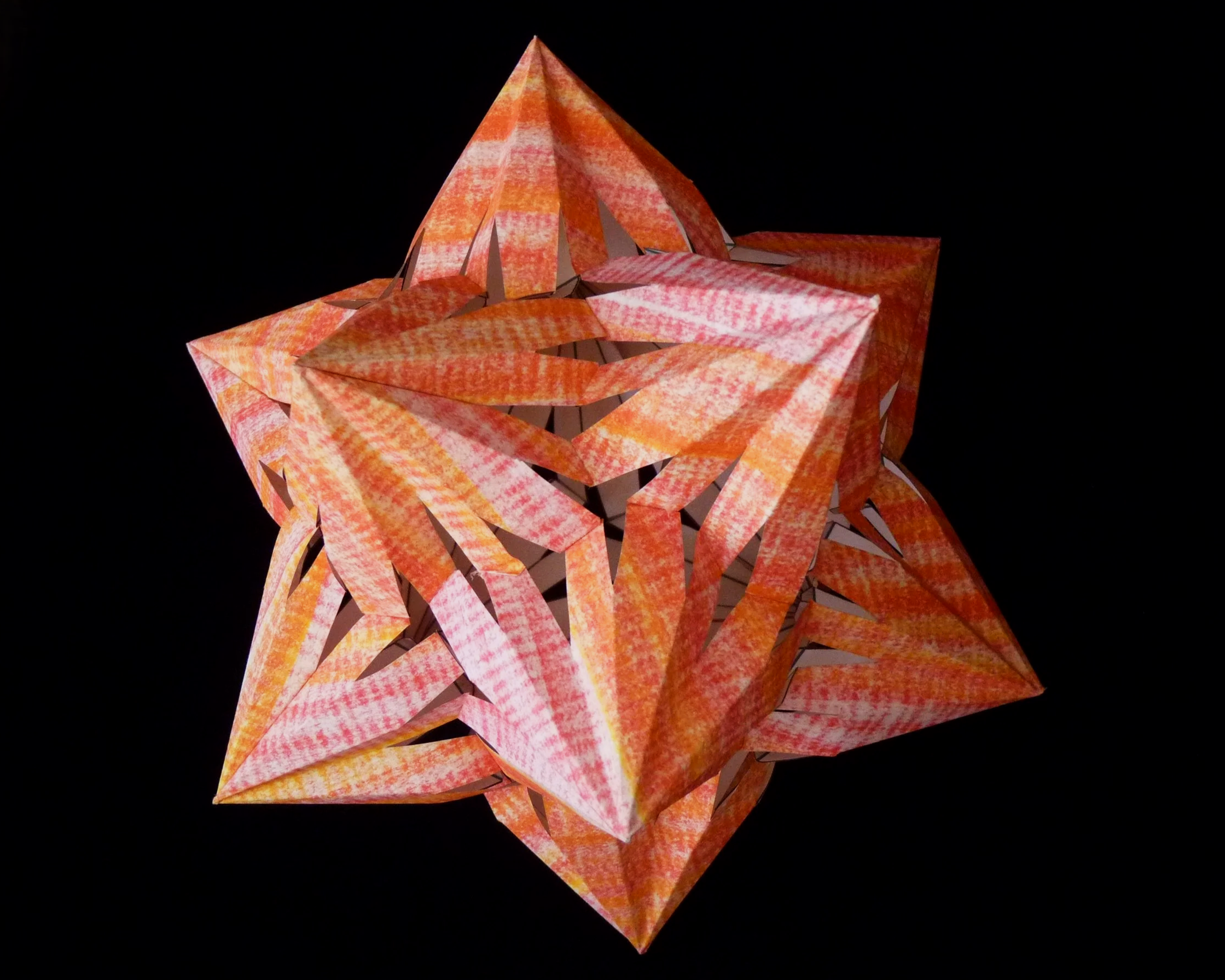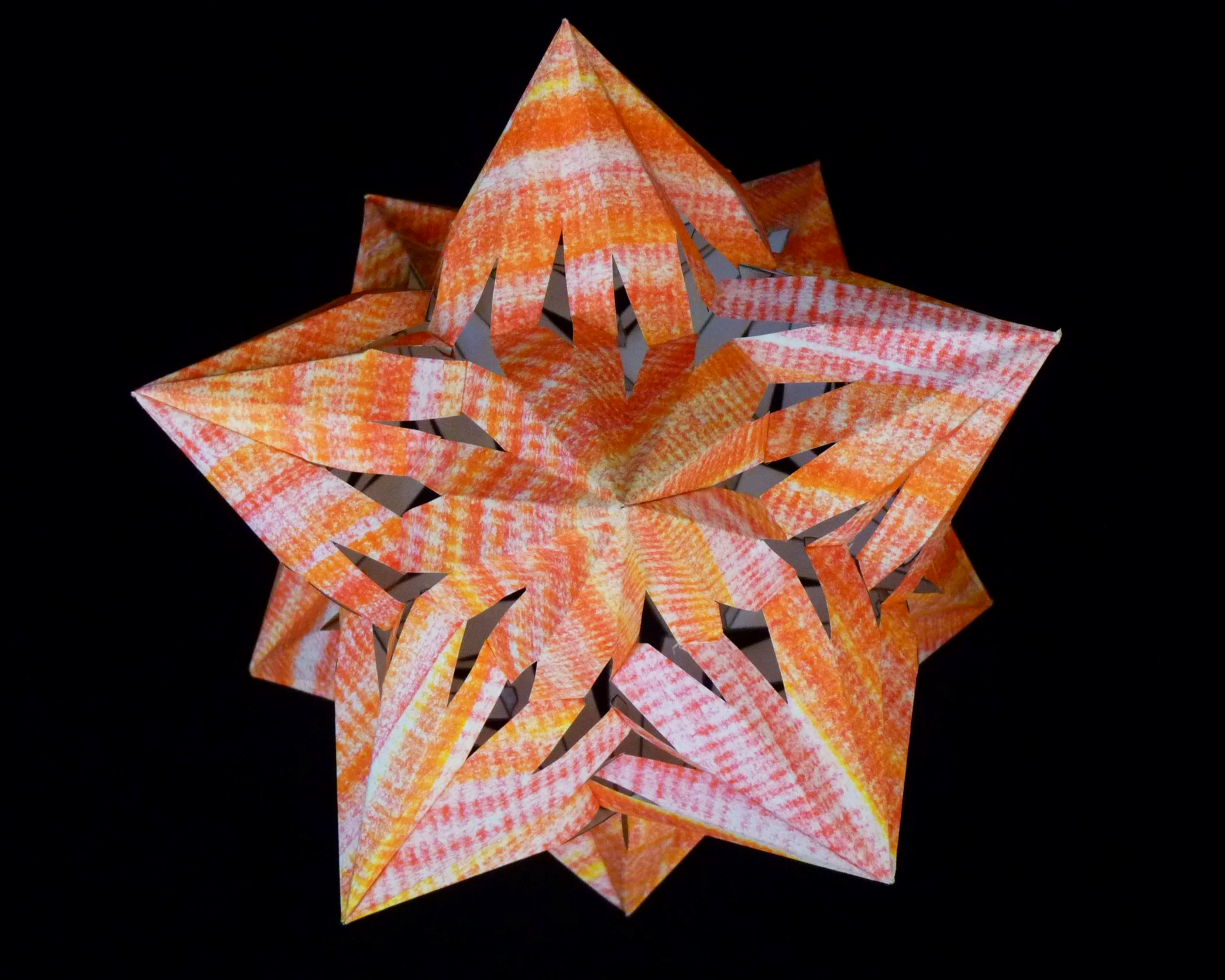 This Callisto is a stellation of the pentagonal hexecontahedron, one of the thirteen Catalan solids. Each of the twelve points cover five faces of the pentagonal hexecontahedron