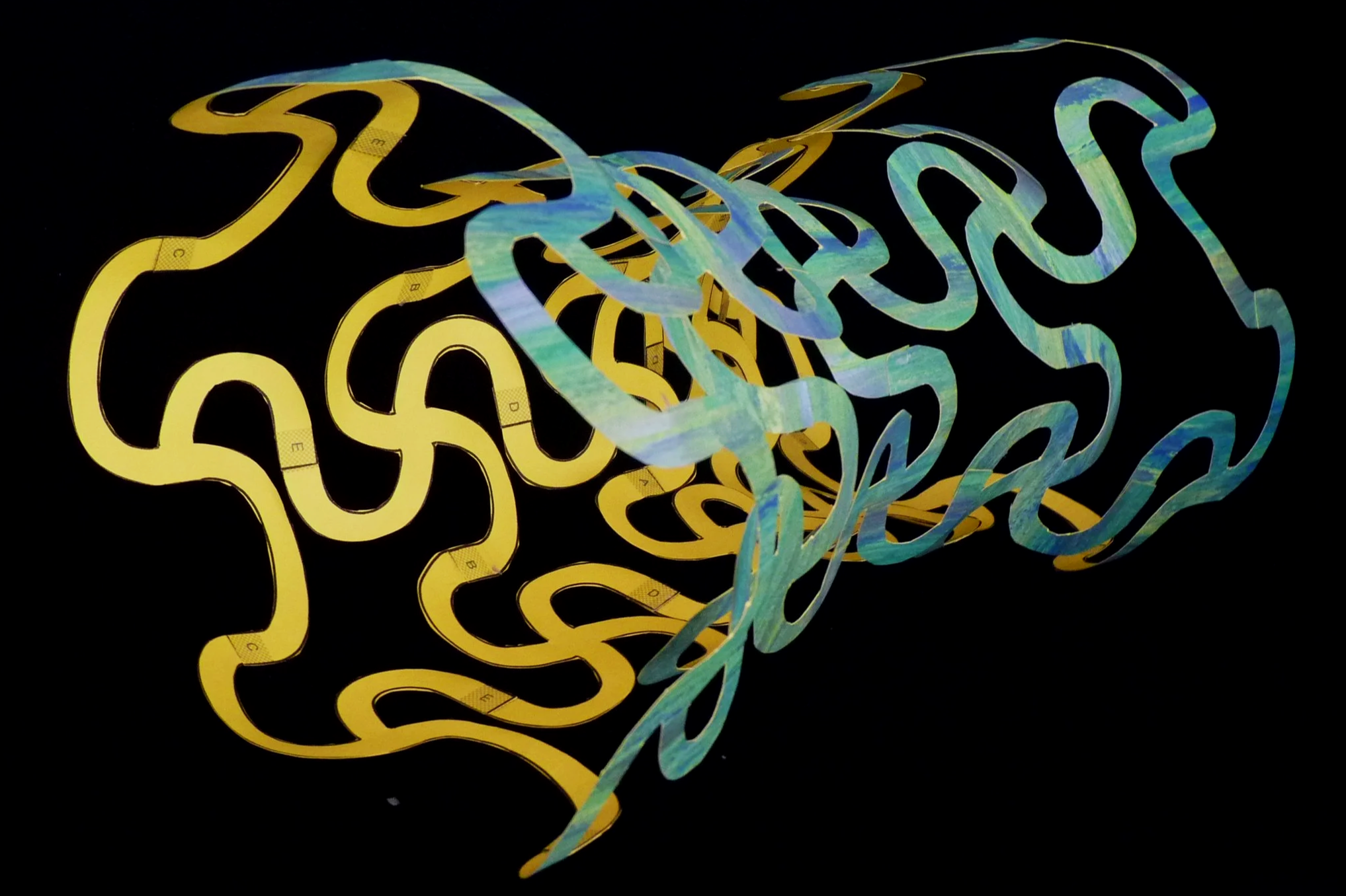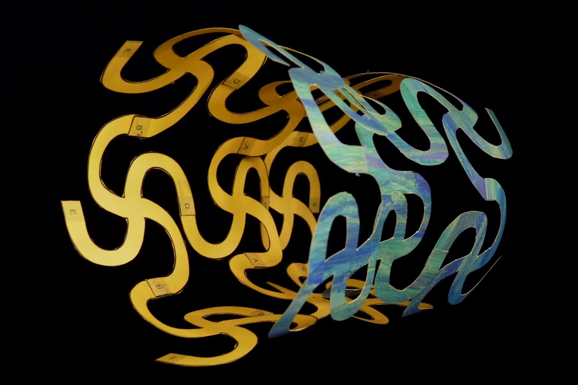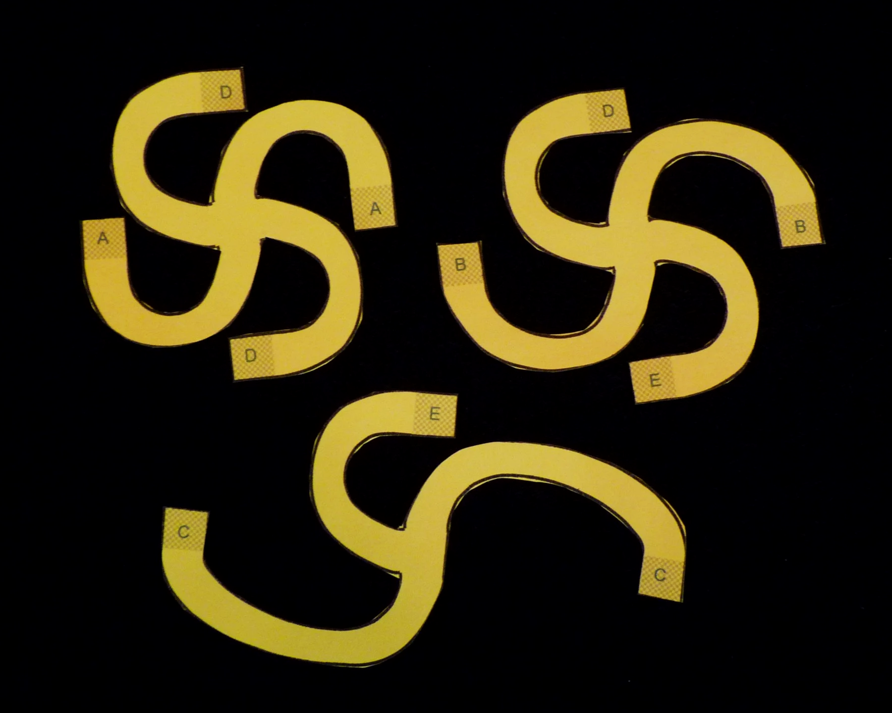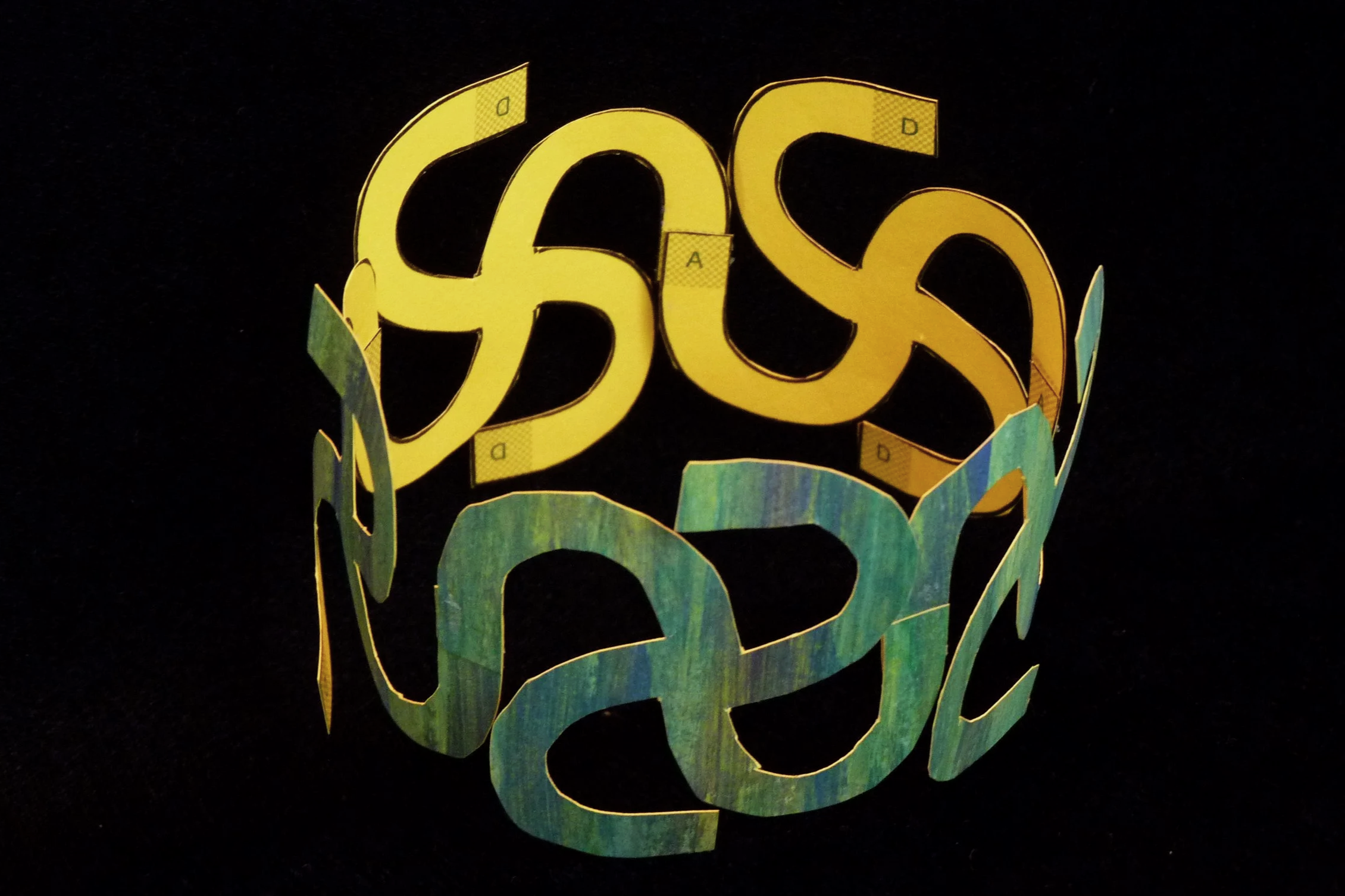 Connect the five small parts together in a line by gluing each Patch A to overlap with the Patch A of its neighbors (Photo 3). Bend the line of parts into a ring and glue Patch A on the first part to Patch A on the fifth part (Photo 4).