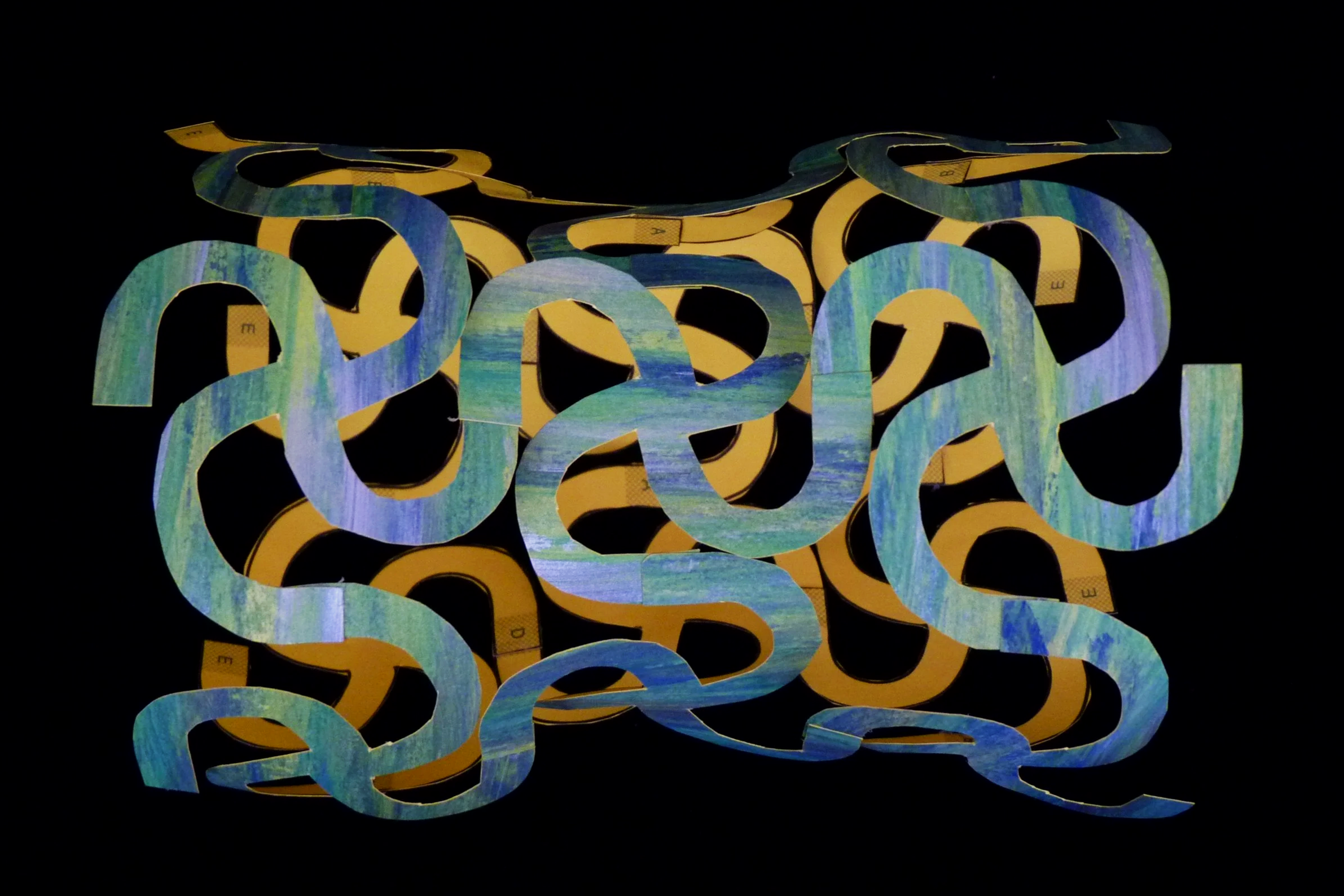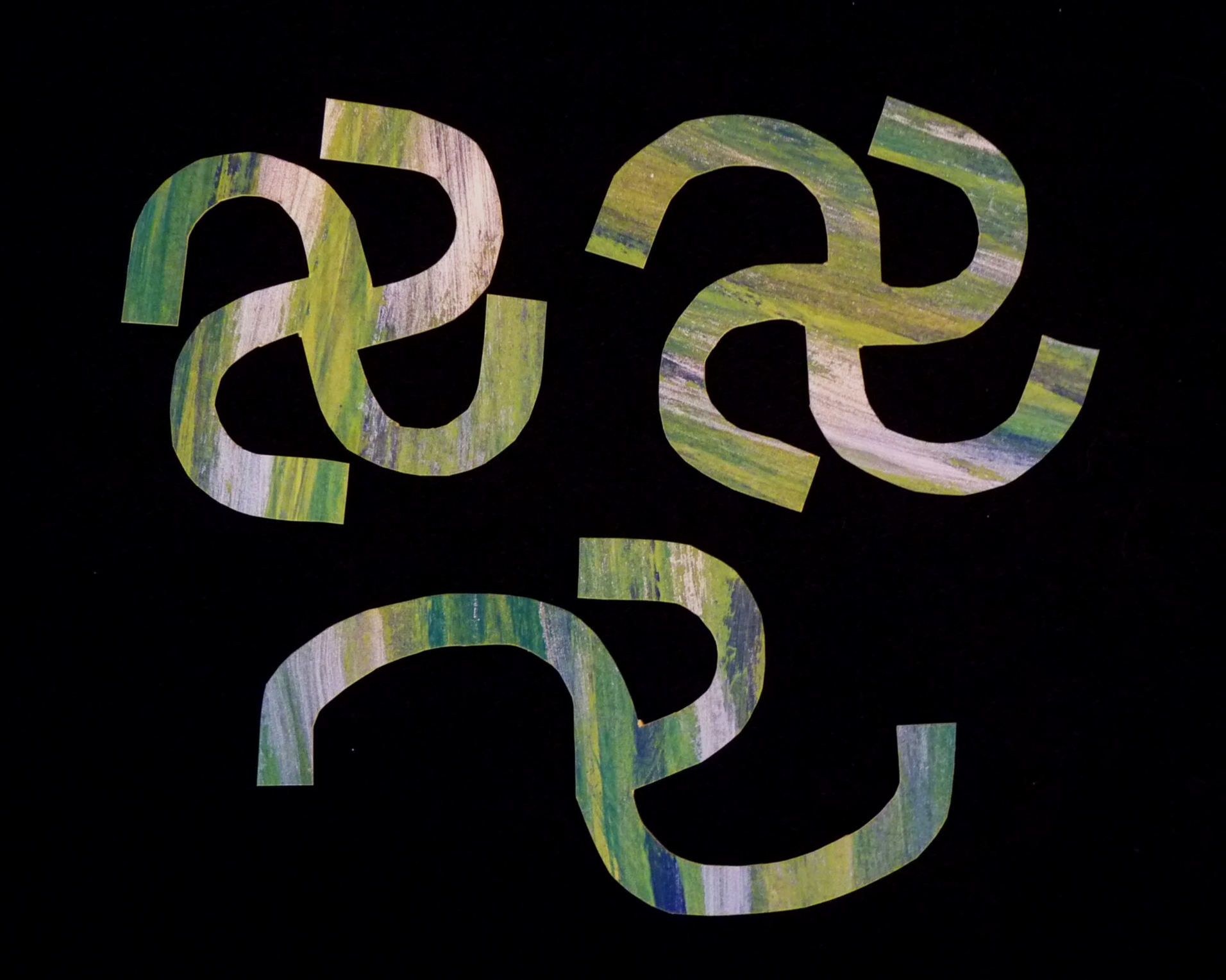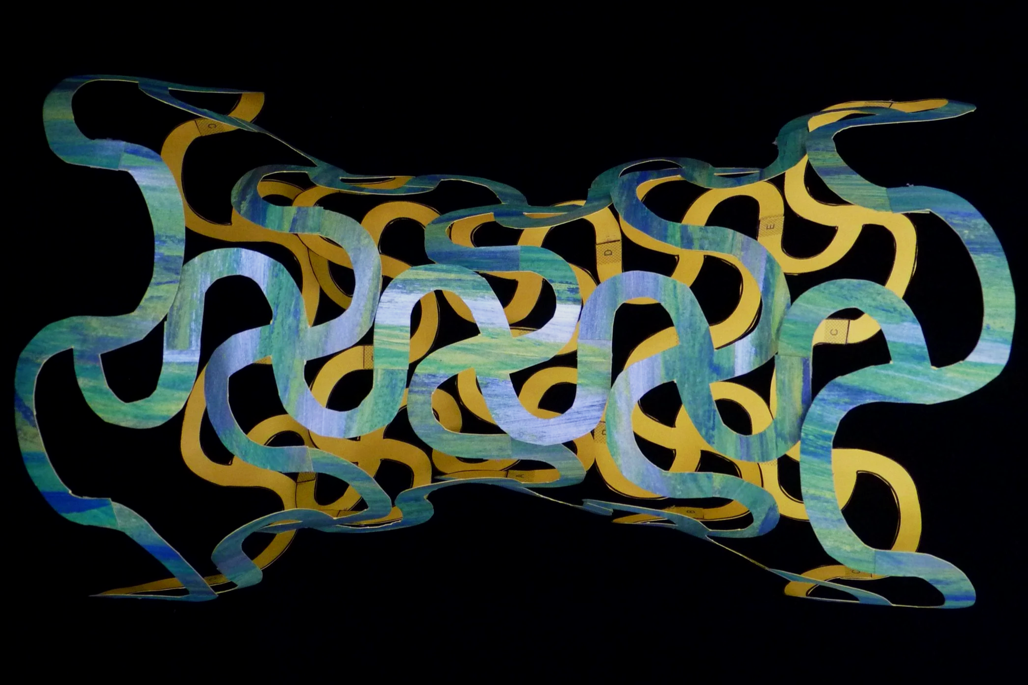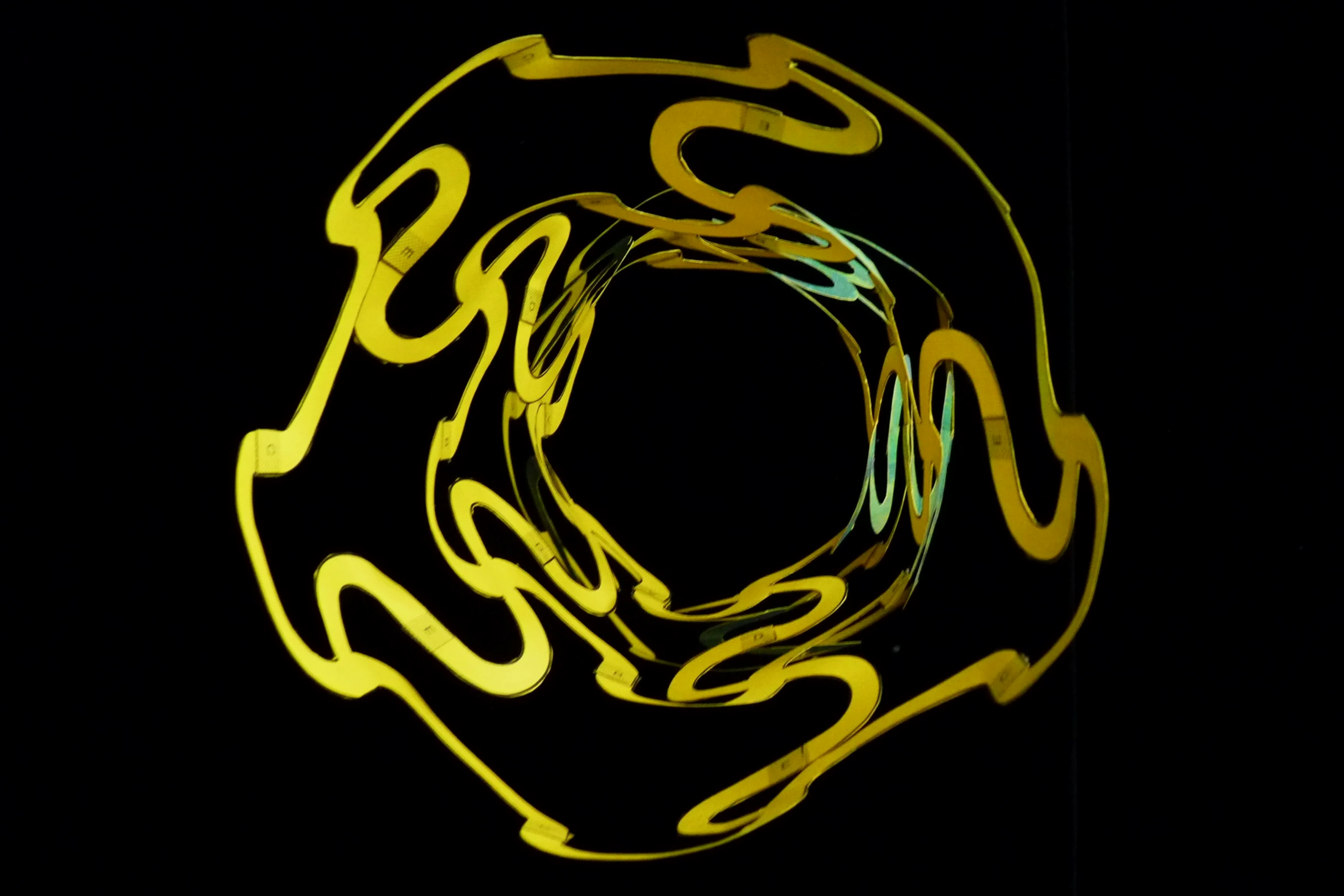 Connect the five small parts together in a line by gluing each Patch A to overlap with the Patch A of its neighbors (Photo 3). Bend the line of parts into a ring and glue Patch A on the first part to Patch A on the fifth part (Photo 4).