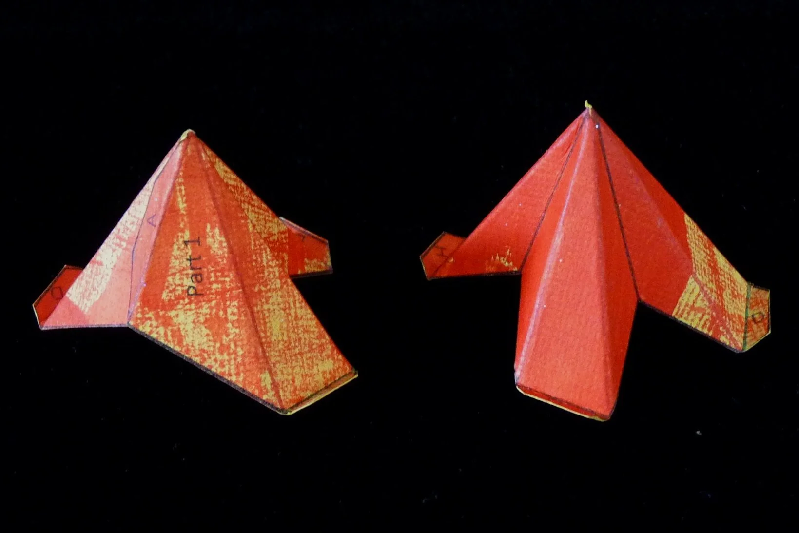 Connect Part 2 to Part 1 by gluing Flap B on Part 2 to Flap B on Part 1. Connect Part 3 to Part 1 by gluing Flap D on Part 3 to Flap D on Part 1.