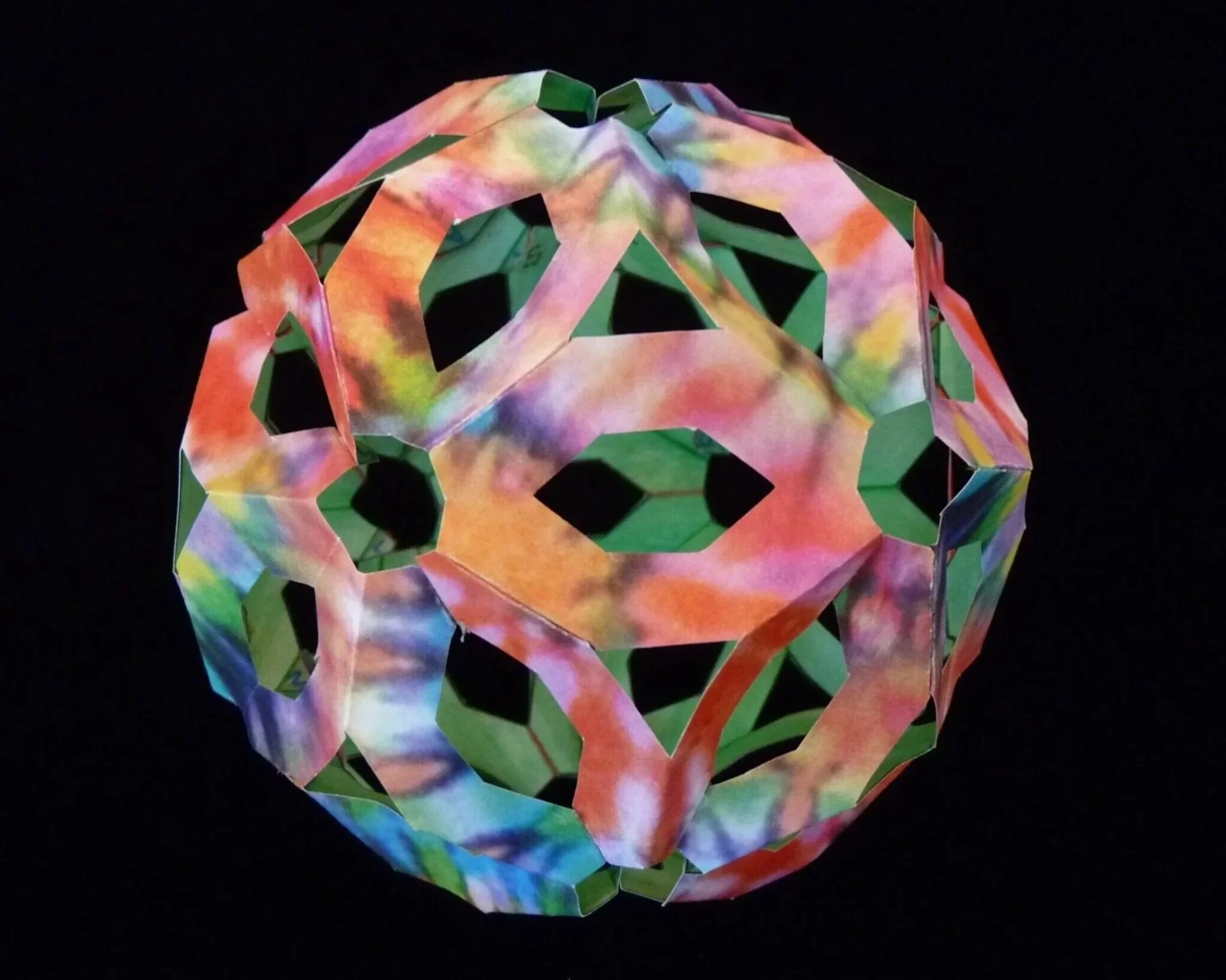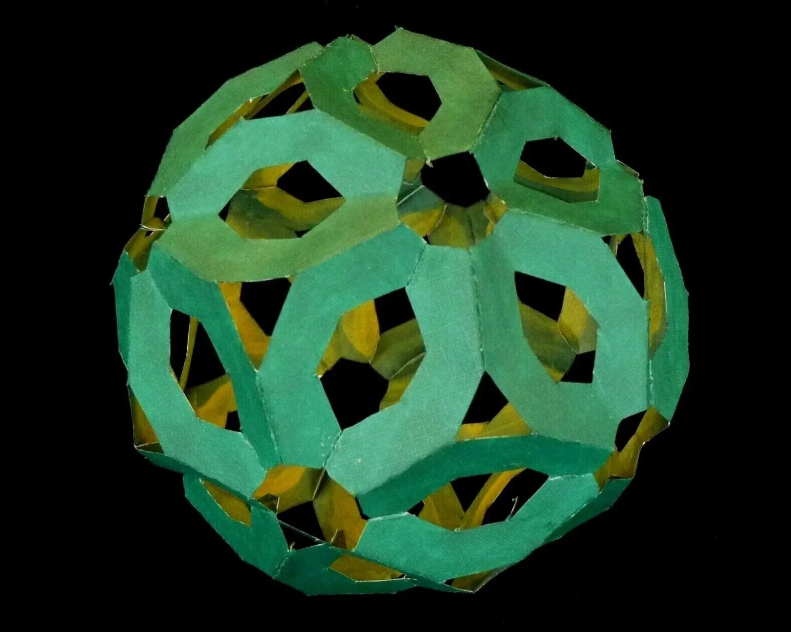 Overlapping flowers form an amazing sphere. Each flower has five petals that it shares with one of its neighbors.