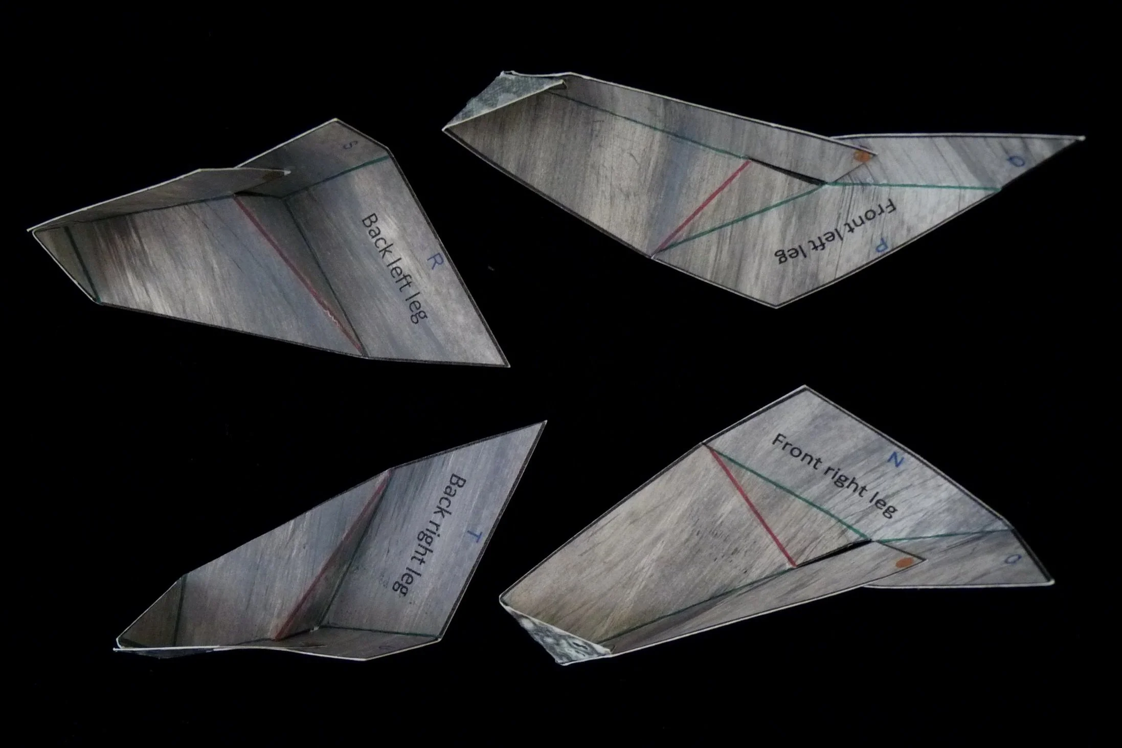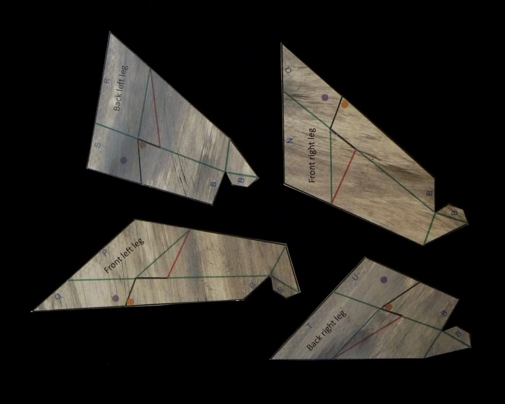 Cut out the four leg parts by cutting on all black lines including the two interior black lines on each leg.