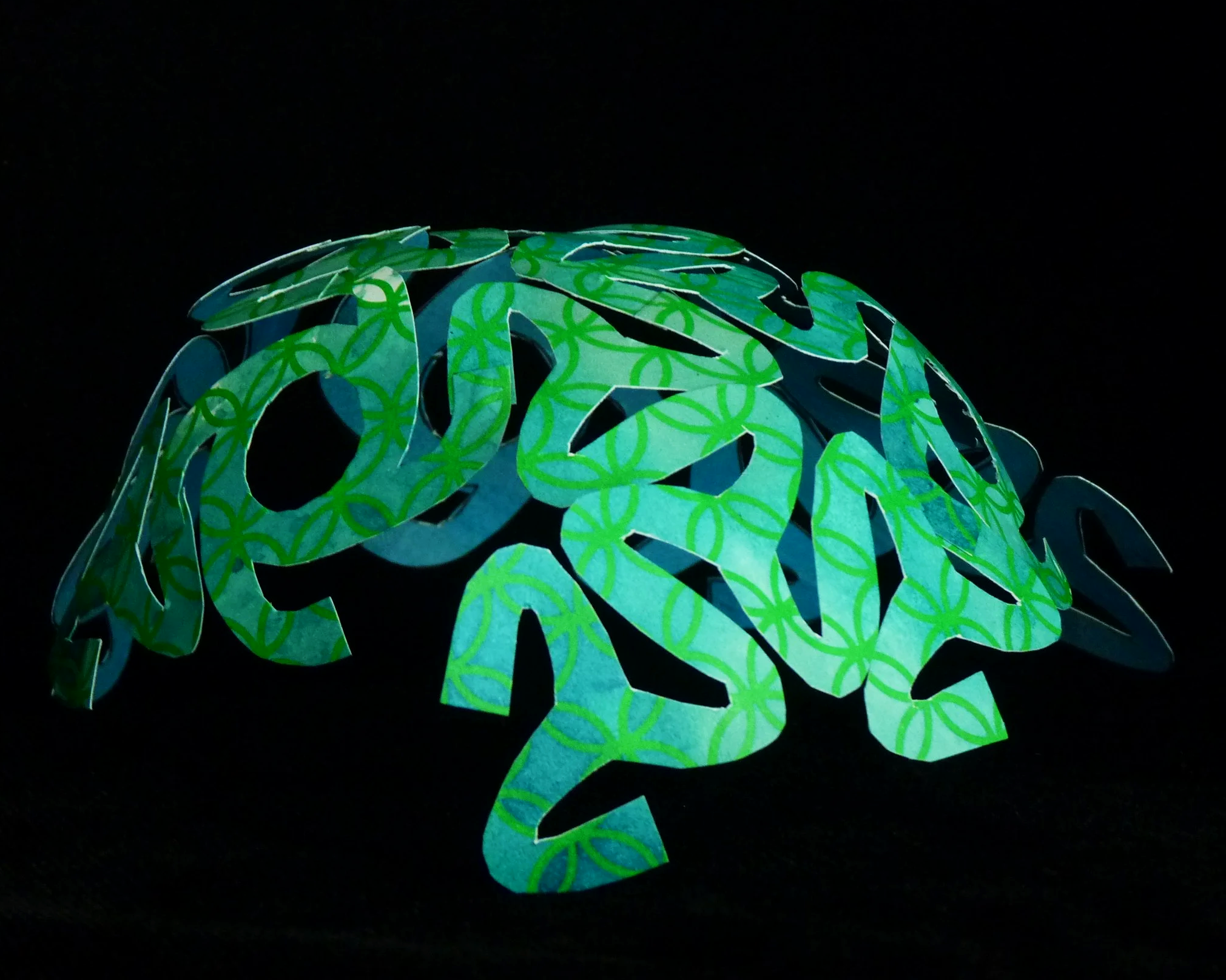 In two locations on each Part 2, attach arm to the adjacent Part 1 arm labelled with a “2”. Again attach by gluing patches to overlap. Project should now have a bowl form.
