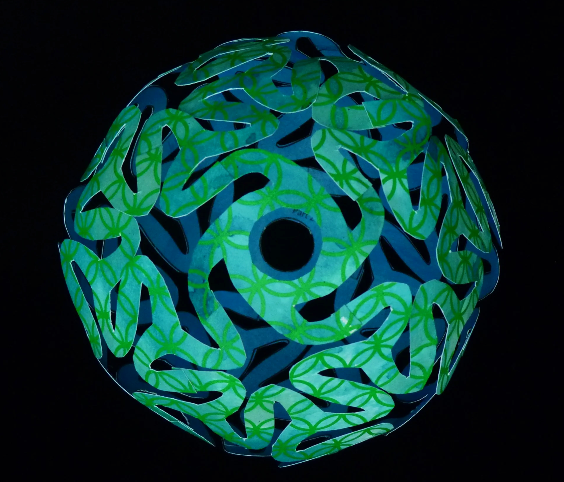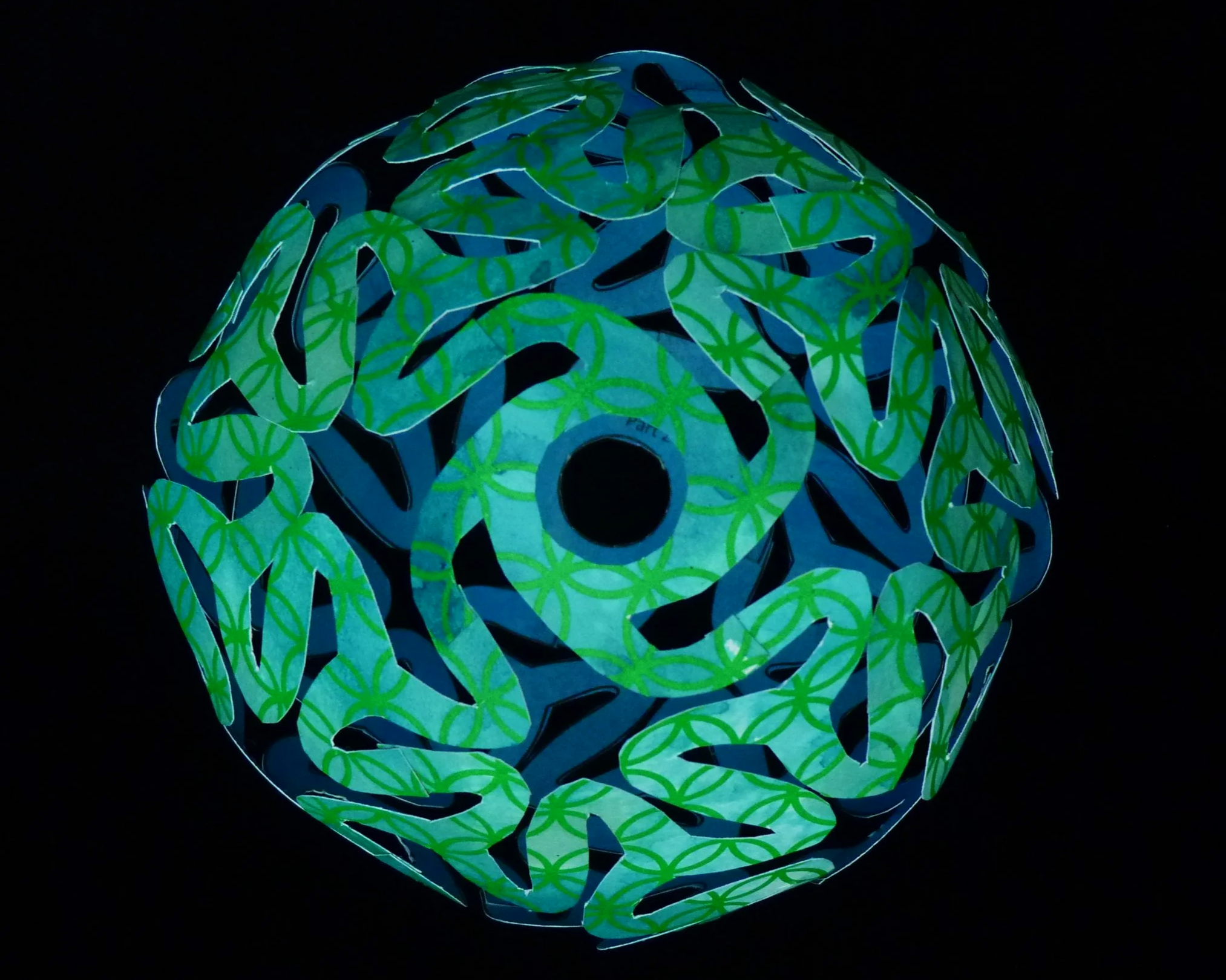 Cut out the fourteen parts by cutting on the black lines. On the Part 2’s, poke a hole in the center circle to start the cut out of these circles.