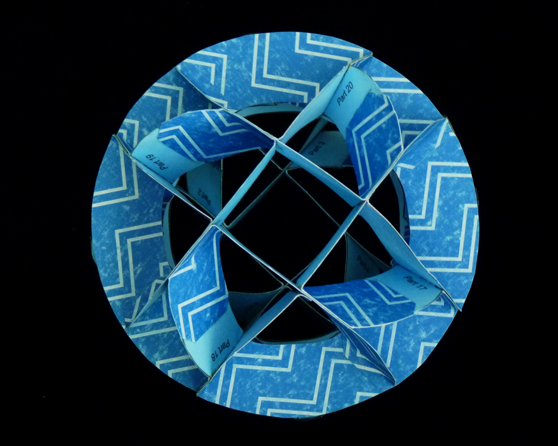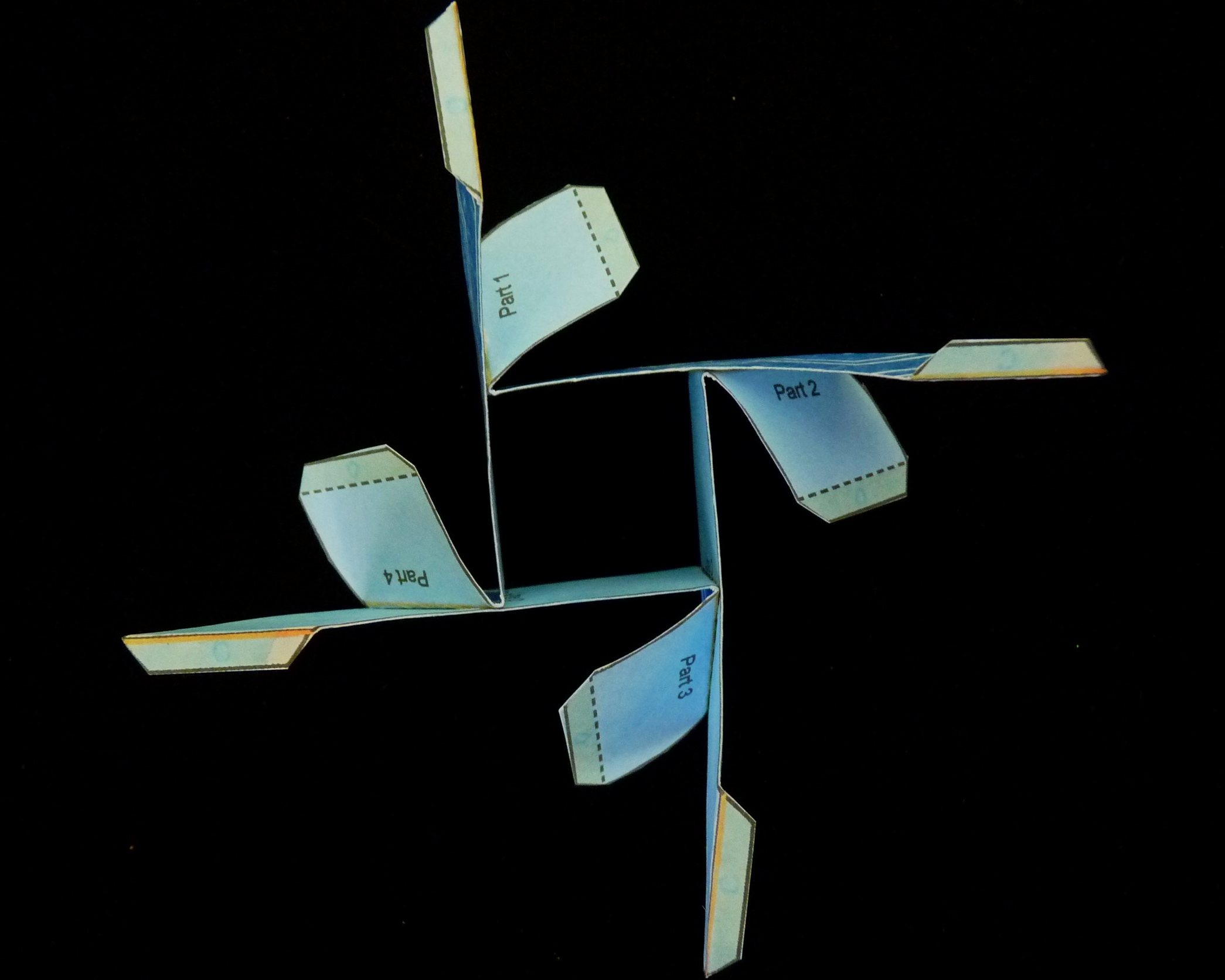 Connect four parts. Glue Patch B on Part 2 to Patch A on Part 1. Glue Patch B on Part 3 to Patch A on Part 2. Glue Patch B on Part 4 to Patch A on Part 3. Glue Patch B on Part 1 to Patch A on Part 4.