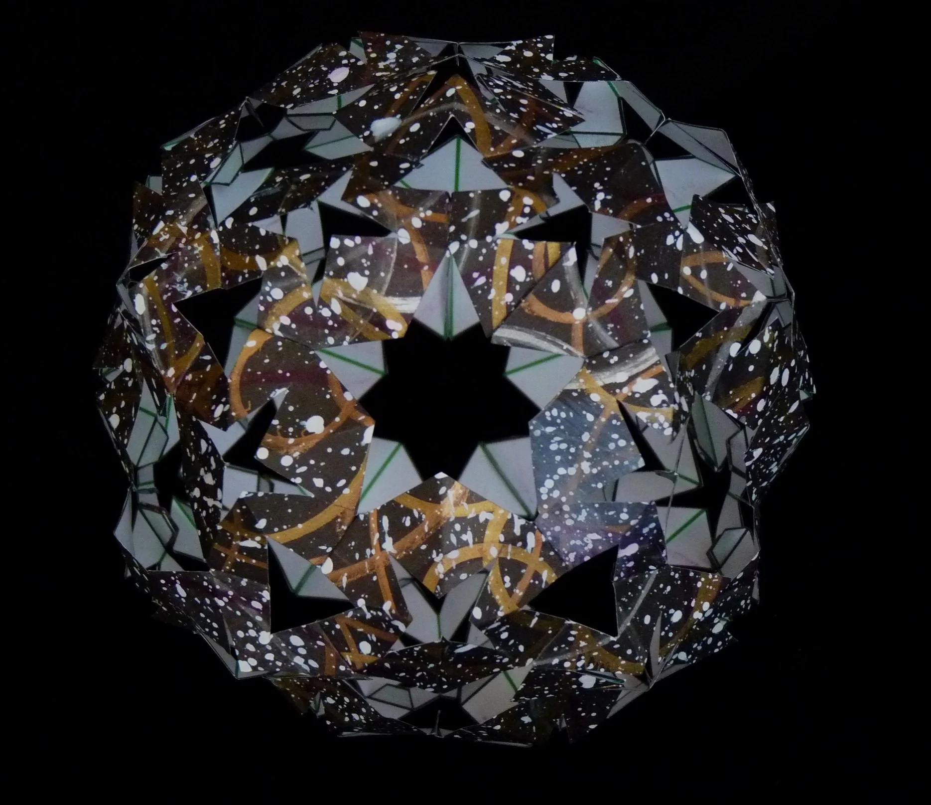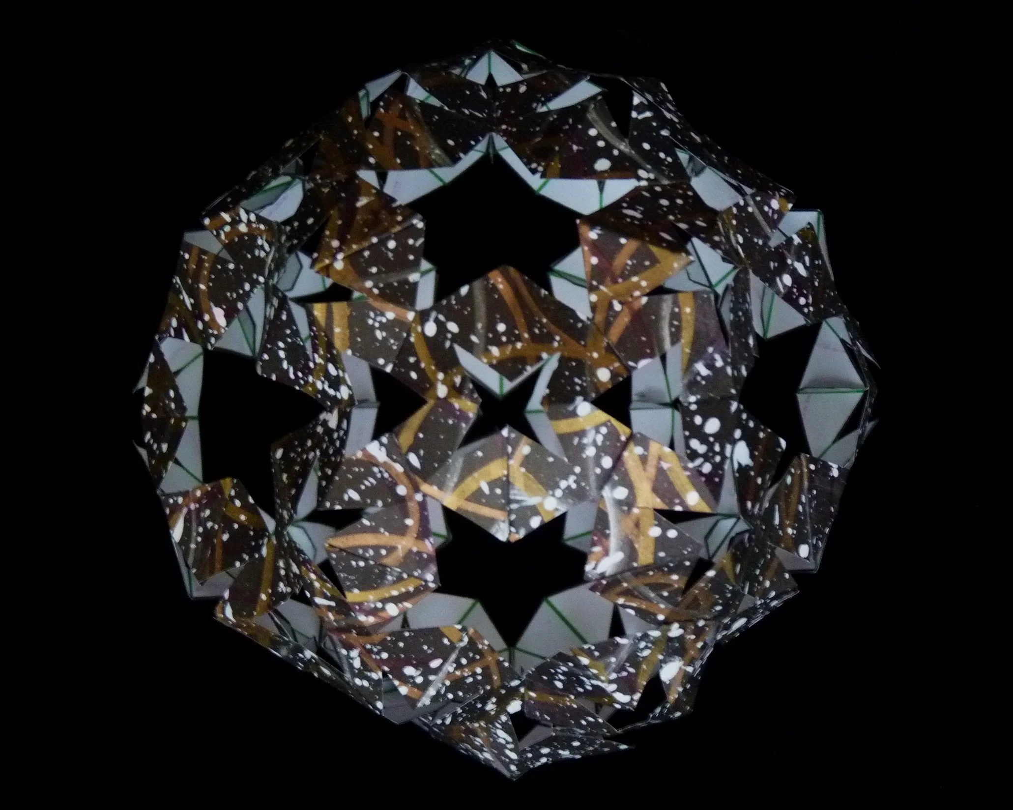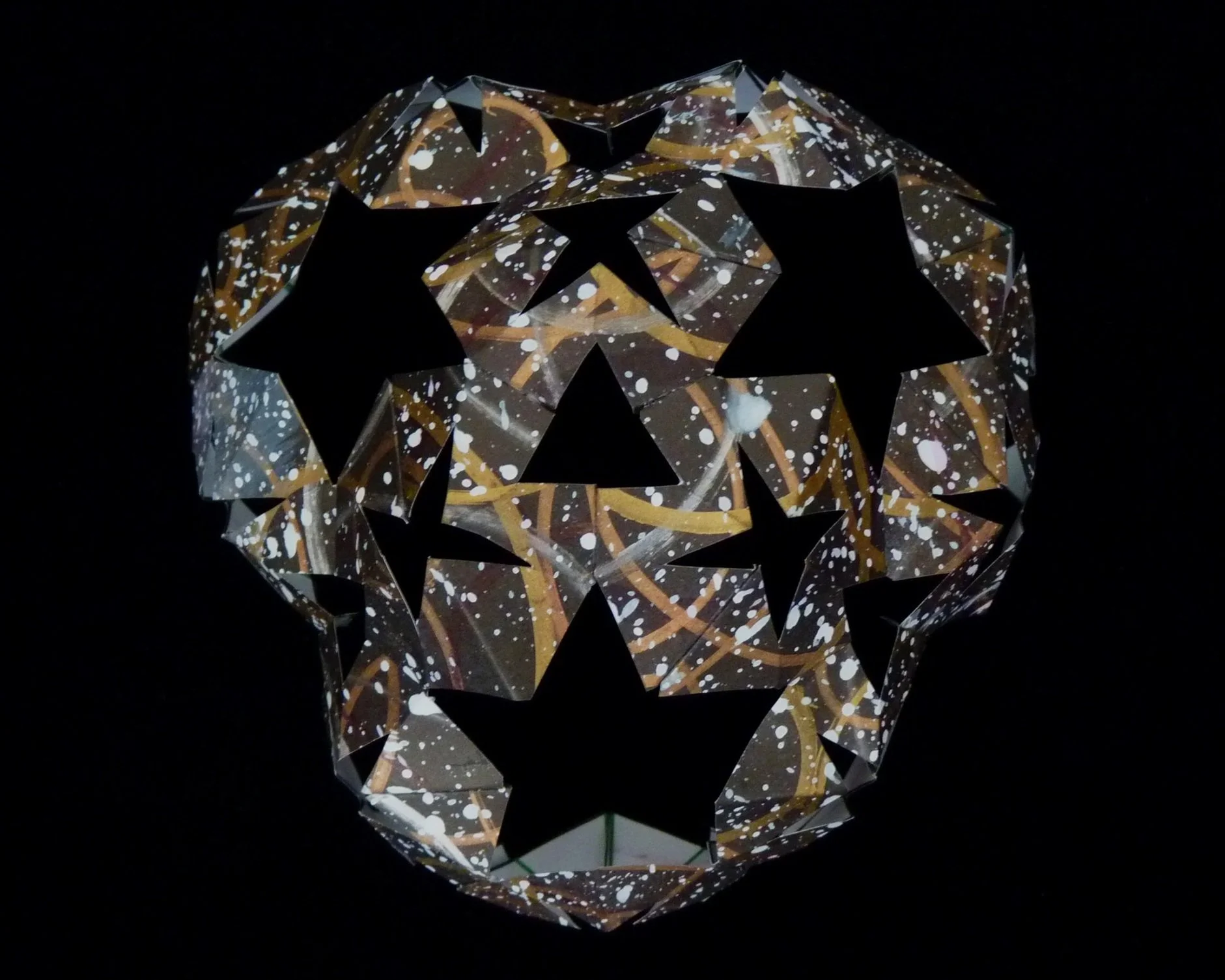 This Starry Night has twelve open 5-point stars, thirty open 4-point stars, and twenty open triangles. Do you see the rhombicosidodecahedron?