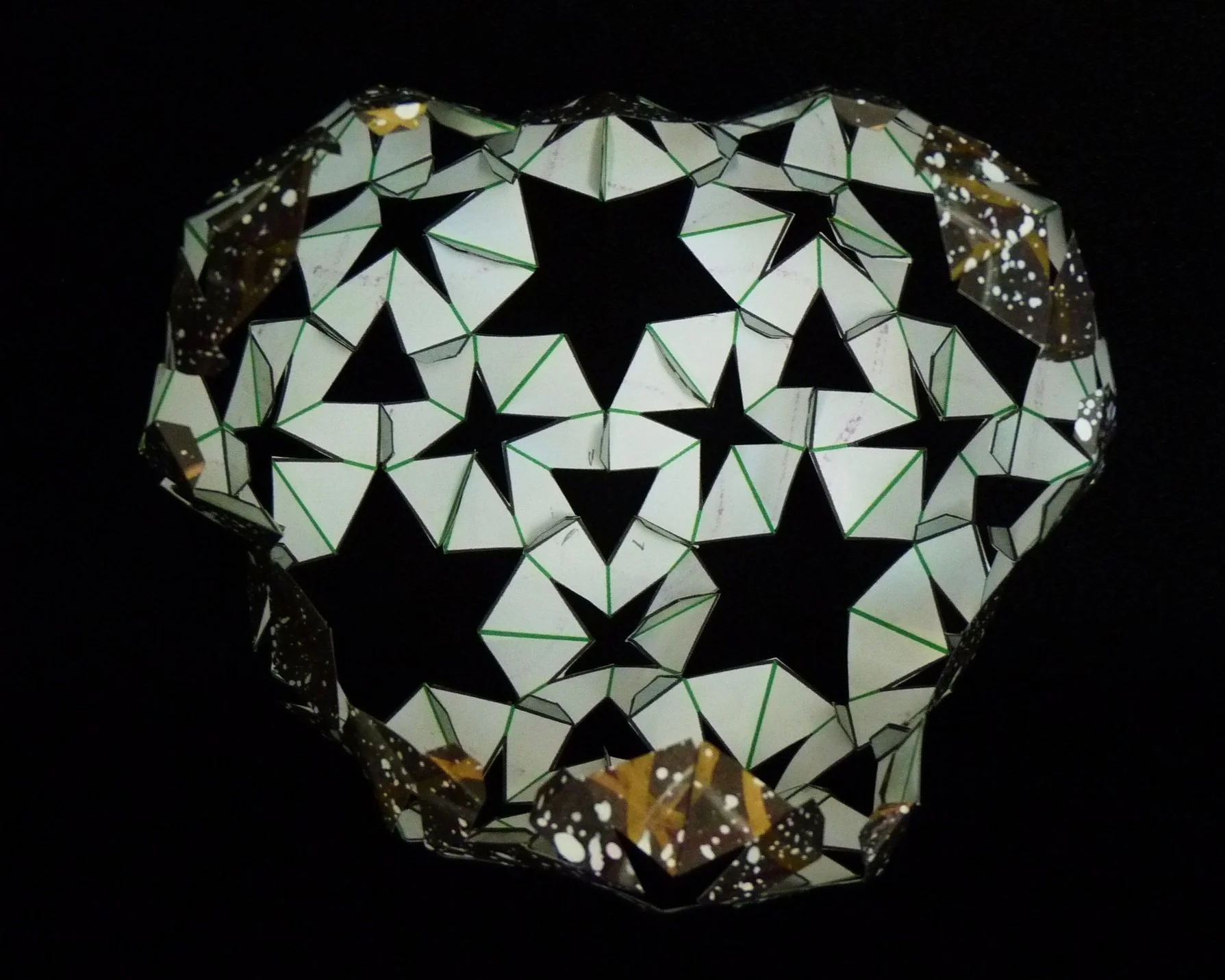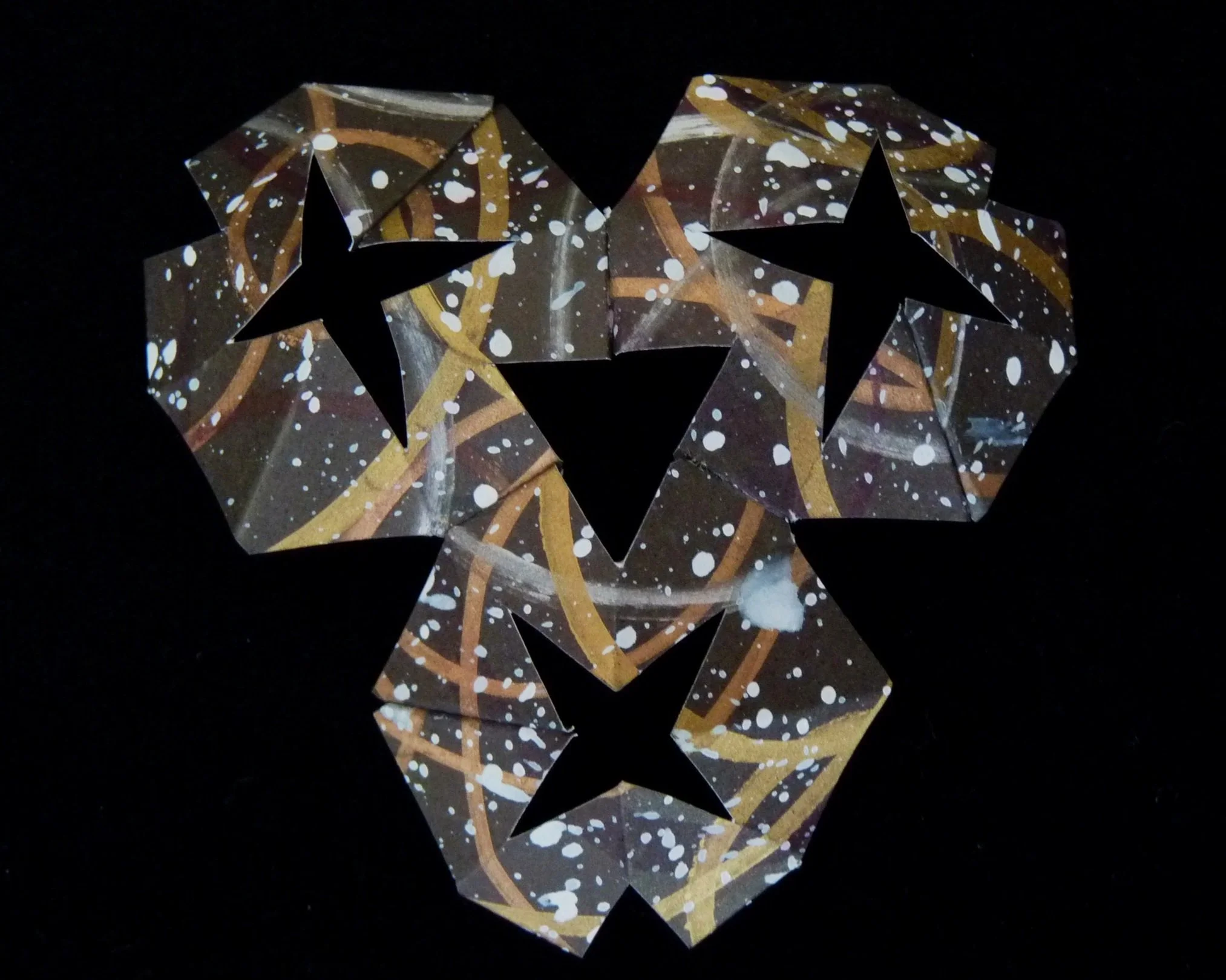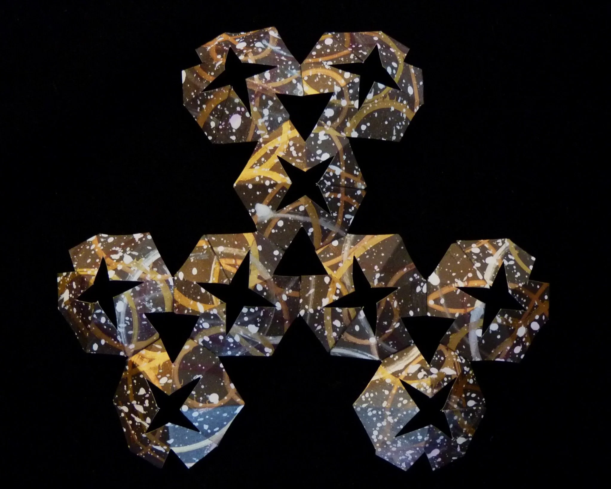 This Starry Night has twelve open 5-point stars, thirty open 4-point stars, and twenty open triangles. Do you see the rhombicosidodecahedron?